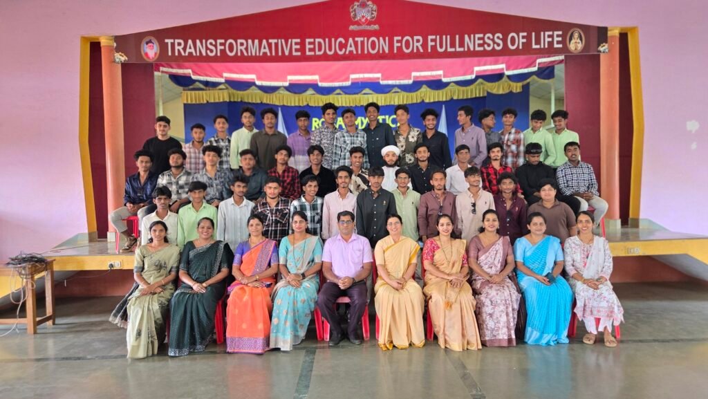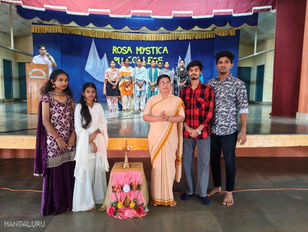 February 14 Kinnikambla: Rosa Mystica PU College organized a grand Farewell Party to the Outgoing Batch of II year PUC students in College Auditorium. The Program commenced at 9.30 am with a prayer song. Mrs Sujatha Lecturer in kannada warmly welcomed the gathering .Mr Avil Dsilva the Vice principal encouraged Students to stay confident, work hard, and uphold the values of the institution. In her Principals address Sr Anita Lydia addressed the gathering and congratulated the outgoing students on successfully completing their academic journey. The Principal advised the students to remain confident, honest, and dedicated in whatever path they choose in the future.